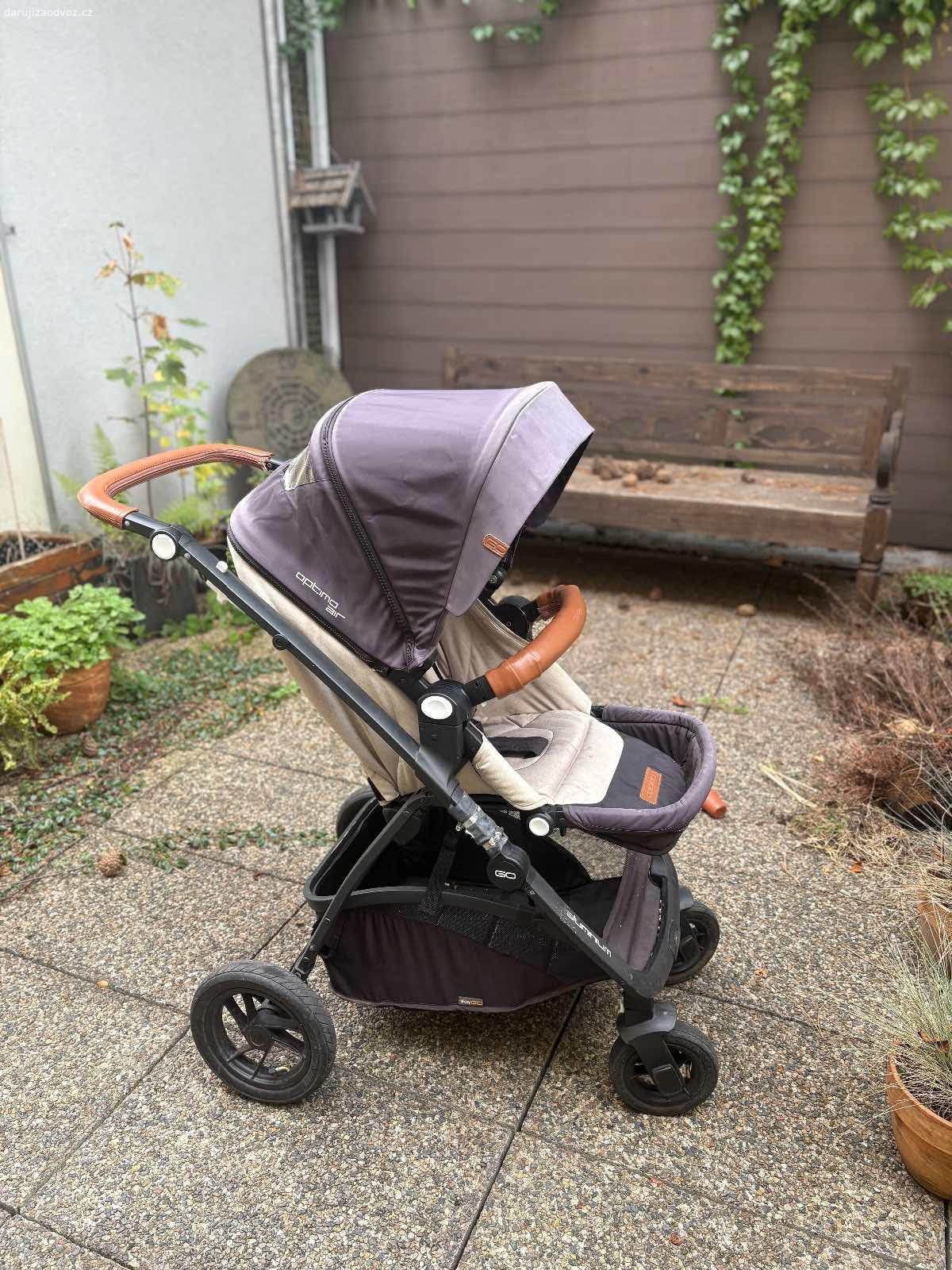 Daruji kočárek Easy Go Optimo Air. Korbička, sportovni sezeni, plastenka. Na hlavní konstrukci je malá vlásečnicová prasklina (viz foto), ale v tom míste jsem to vyztužil a používali jsme to v pohode. Korbička je kompletne vypraná. Sportovní sezení je potreba vyprat. Nafukovací kola. Predni kolecka pri rychlejsi chuzi trochu vibruji, ale daji se zaaretovat.