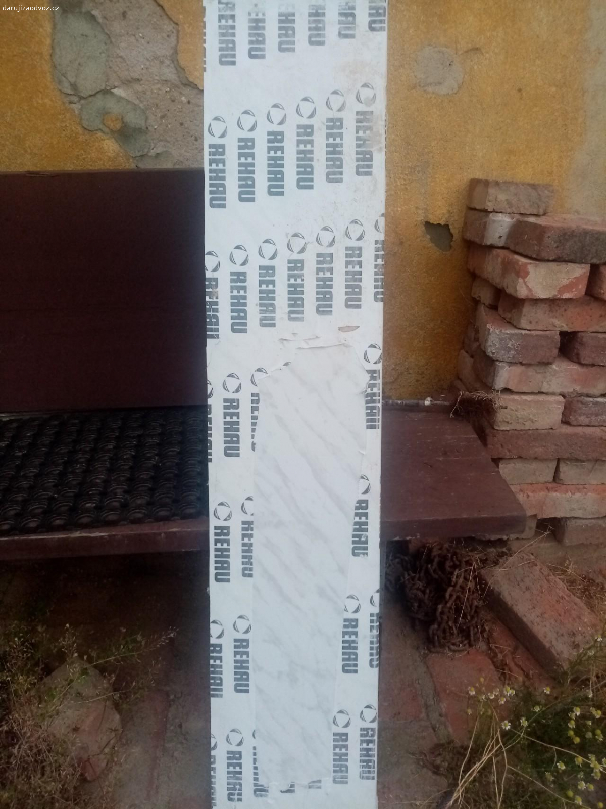 daruji plastové lišty na parapety - 10 ks, velikost: délka 61 cm, výška "zobáčku" 4 cm, šířka 29 mm....
