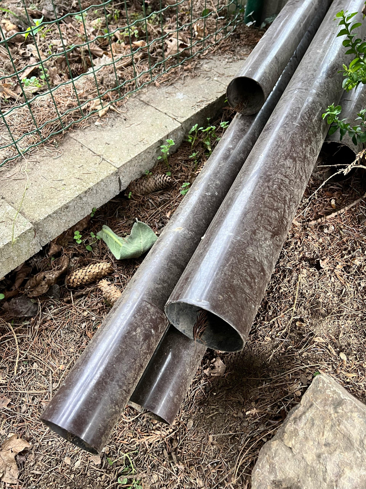 Za odvoz daruji okapy, průměr 7 a 10cm, provedení plast, hnědá barva.
