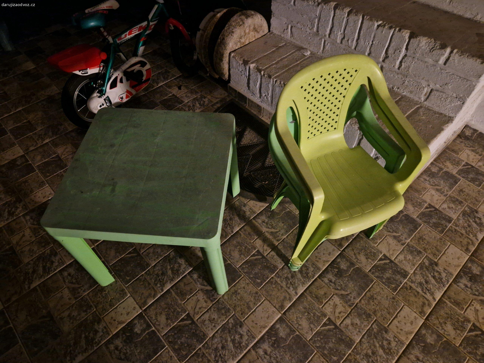 Nabízím za odvoz starý zelený plastový stůl a k němu tři bílé plastové židle. Viz foto. Pozor, stůl ...