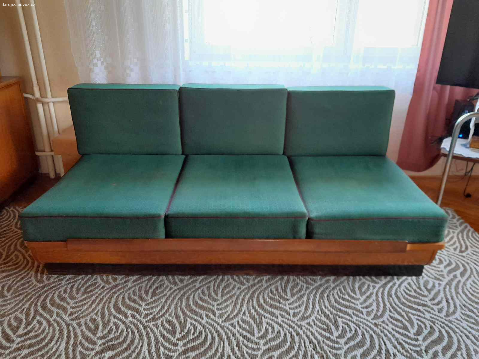 Daruji za odvoz gauč první republika, úložný prostor, boční skříňka s šuplíky, dýha na některých mís...