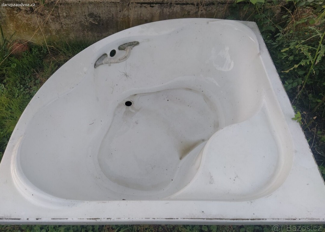 Daruji za odvoz rohovou vanu umístěnou na zahradě.