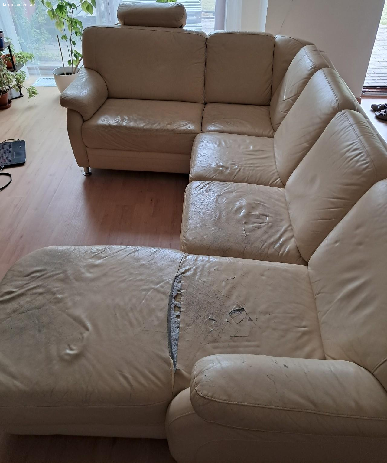 Darujeme rozkládací gauč, rozkládací část je natržena, na povrchu jsou skvrny z vylitého pití od dět...
