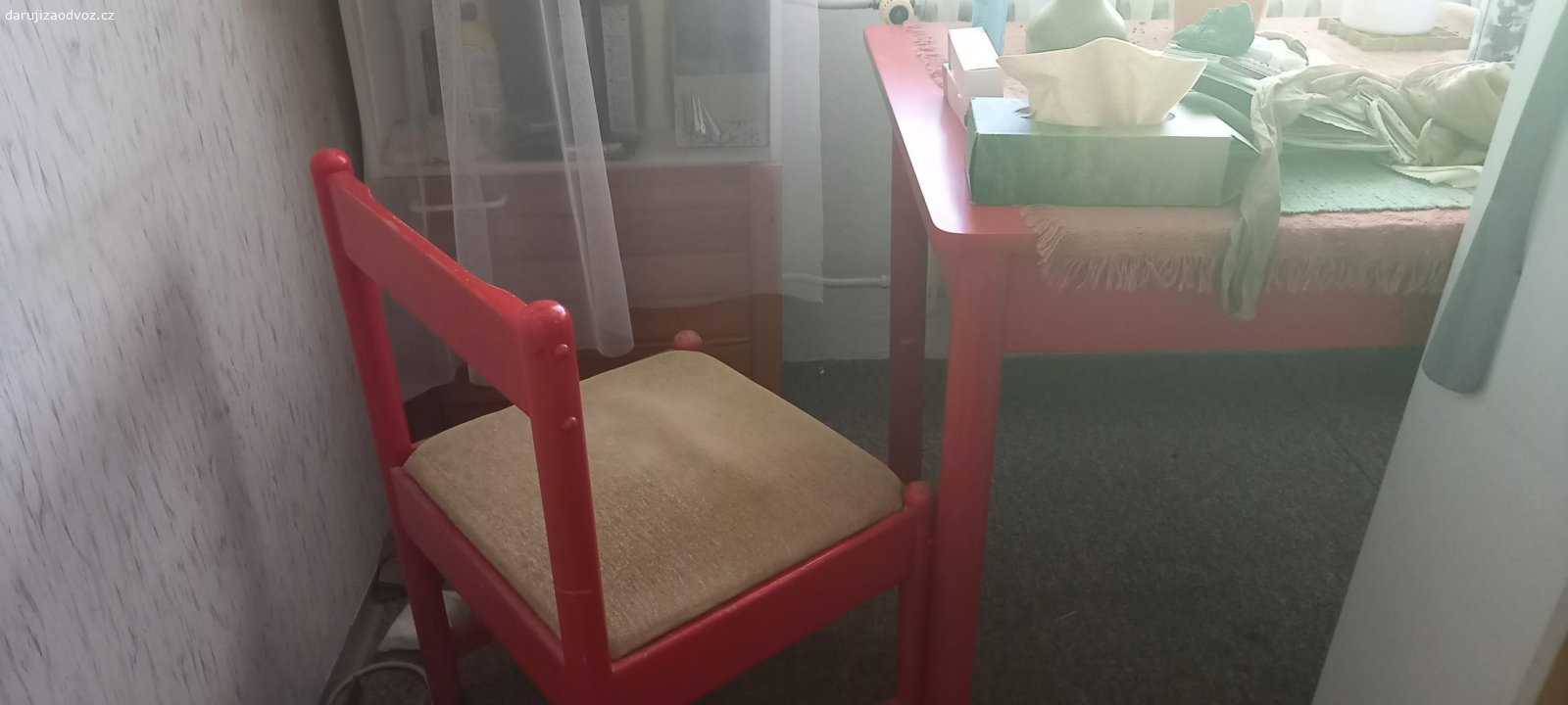 Daruji dvě židle po dětech. Plně funkční. Čalounění jedné je vybledlé, druhé k vyčištění....