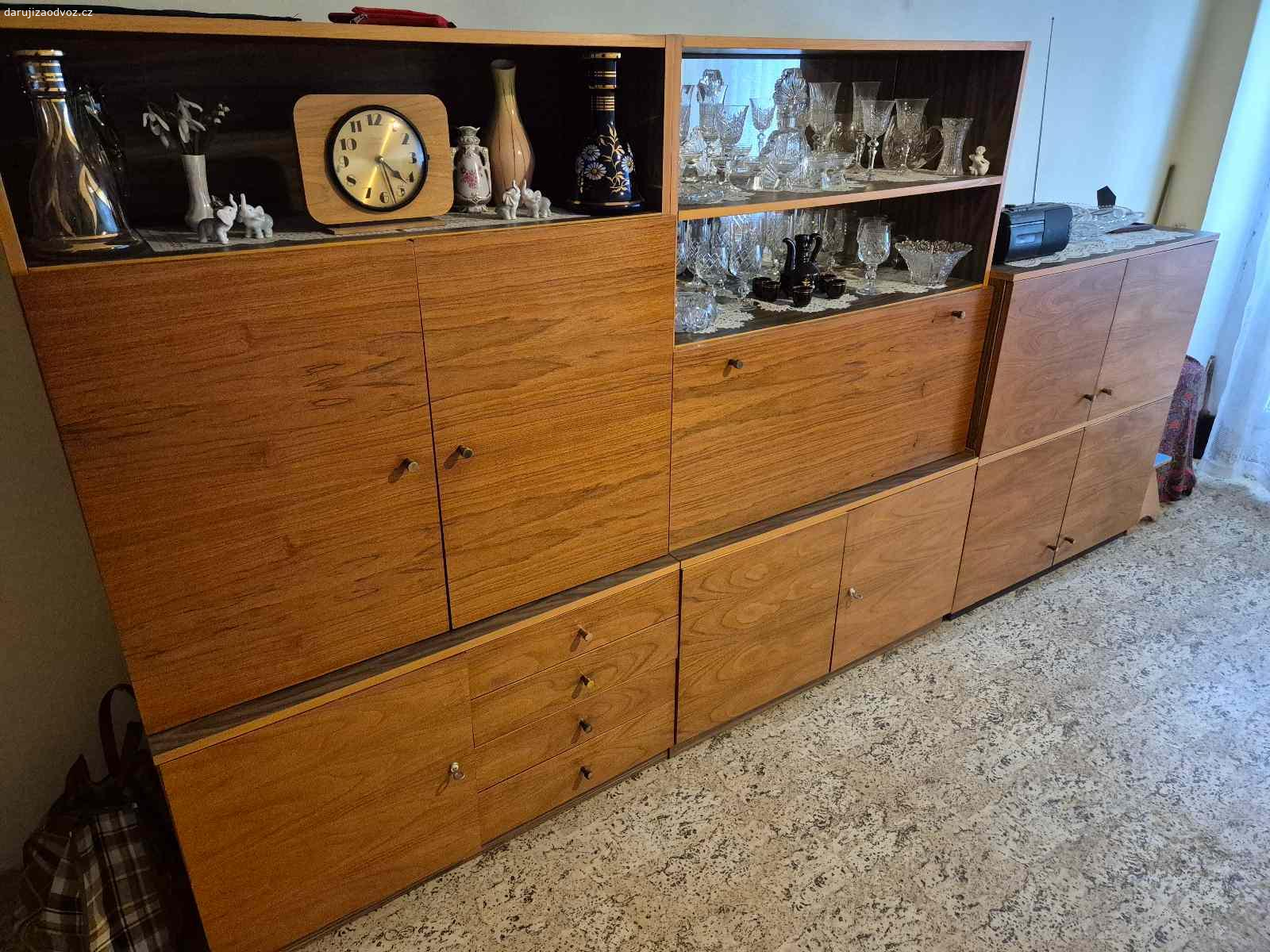 Starší obývací stěna, viz foto. Daruji jako komplet.
