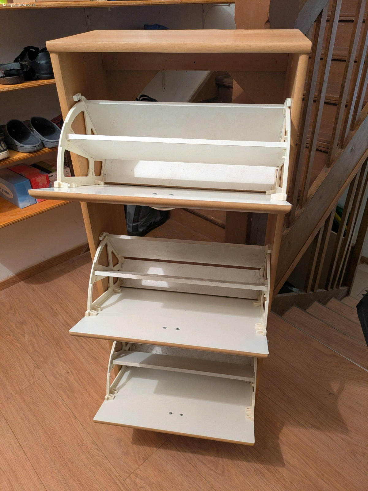 Starší botník, přijde mi škoda ho vyhazovat. Je spíš na nižší typy obuvy (tenisky, sandále, společenská obuv). Předání osobně ve večerních hodinách poblíž zastávky Bohdalec.