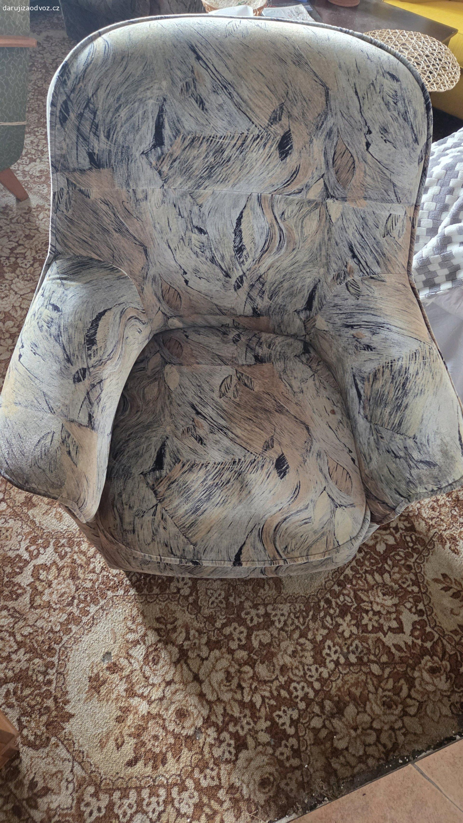 Darují za odvoz TV křeslo, velmi opotřebené. Rozměry 100 krát 75x75.