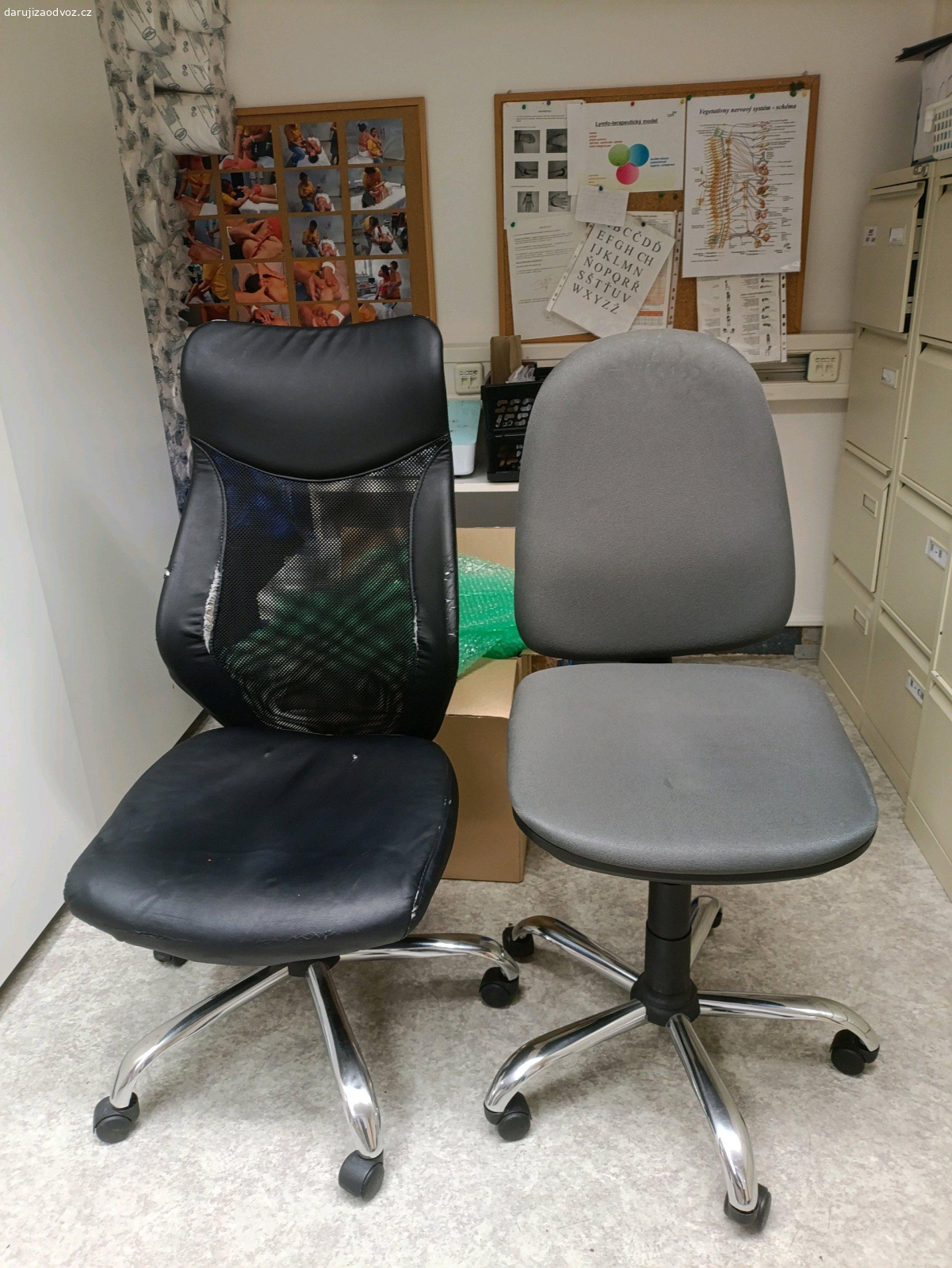 Výškově nastavitelné kancelářské kolečkové židle. První patro v Lymfocentru k odběru mezi 8-18 h tyto dny.