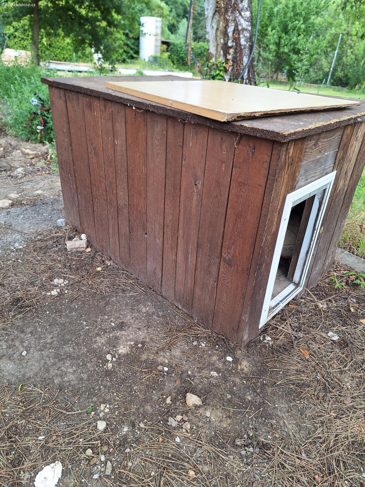 Dobrý den, daruji starou zateplenou boudu pro psa. Včetně střechy, která není na fotce.