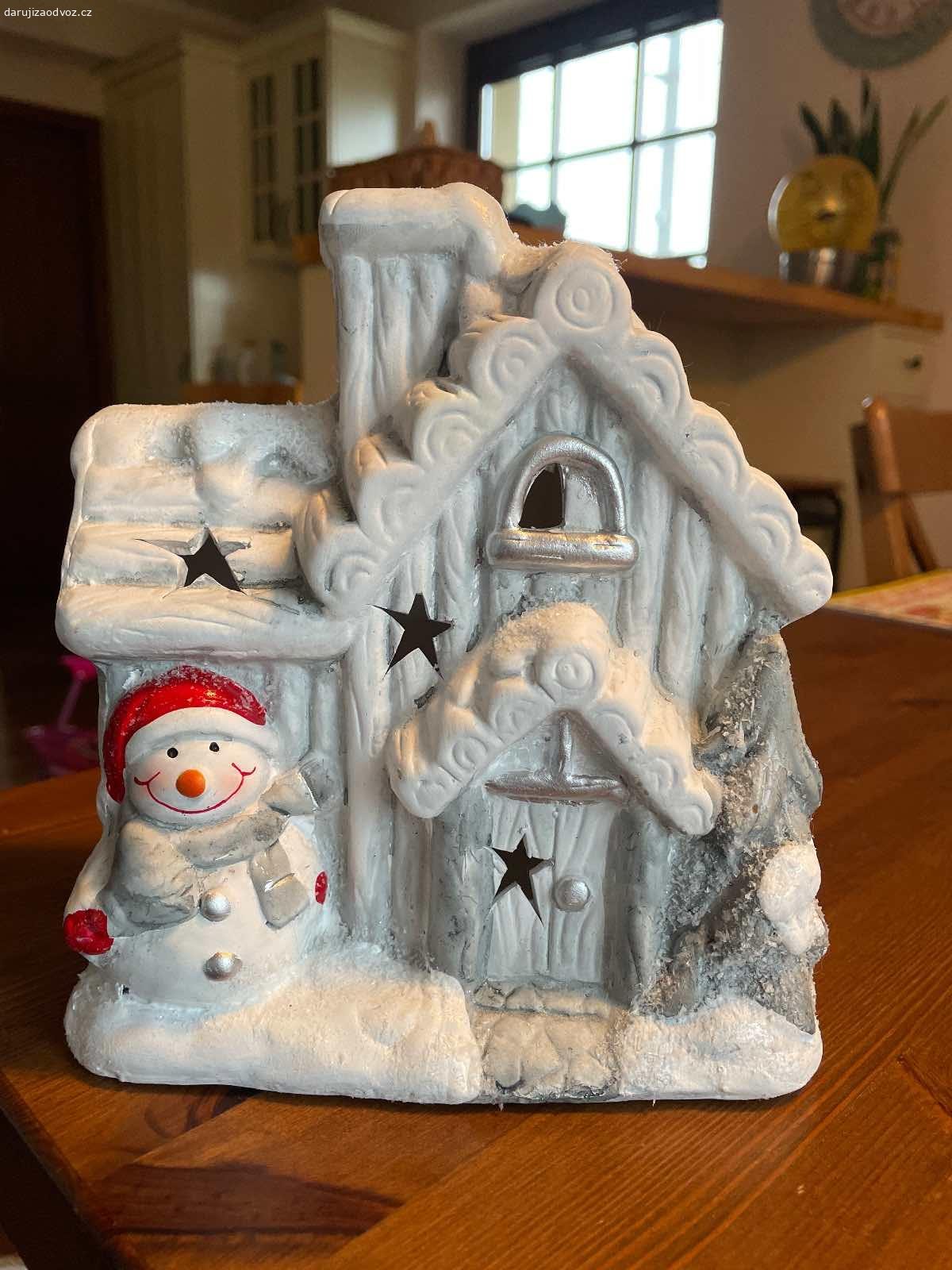 Daruji bílý keramický domeček jako dekoraci.