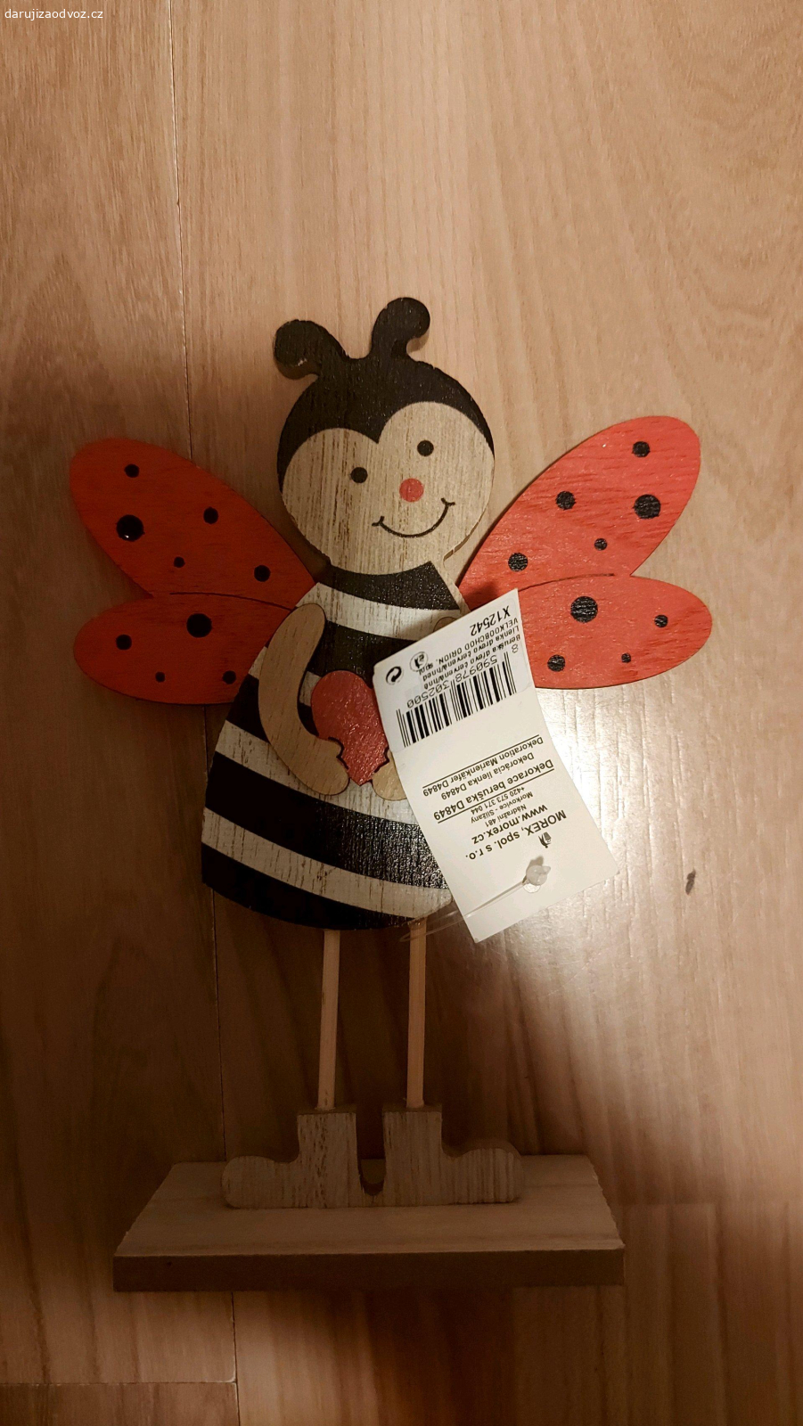 sošky: beruška, žába dřevěná, ropucha na peníze, andílek dřevěný s ruzeninem, čínská kočka štěstí, skleněný svítící slon, ježek.
