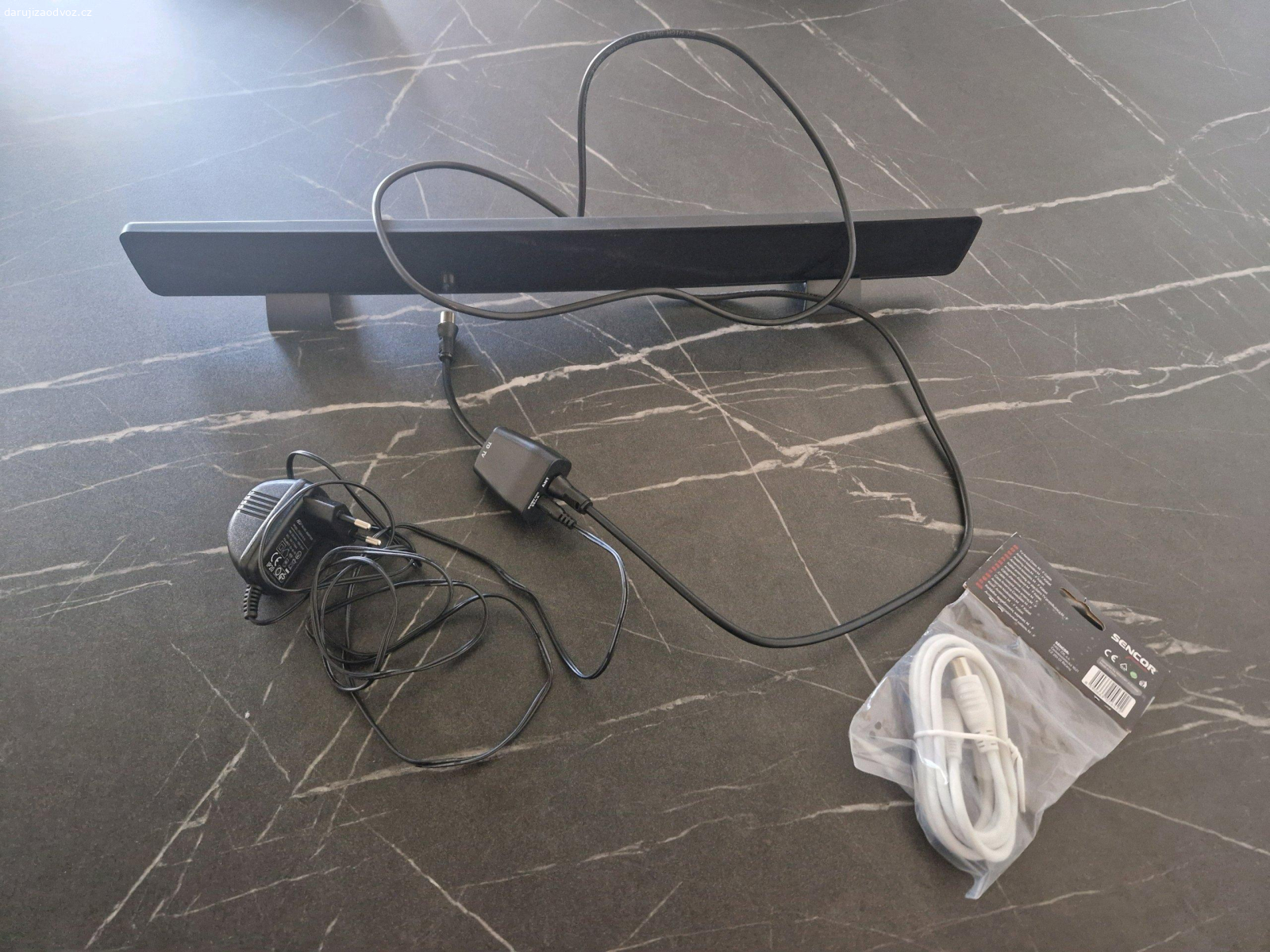 Použitá pokojová anténa pro DVB-T2, plně funkční, lesklý plast na přední straně je dost poškrábaný ale na funkci to nemá vliv.