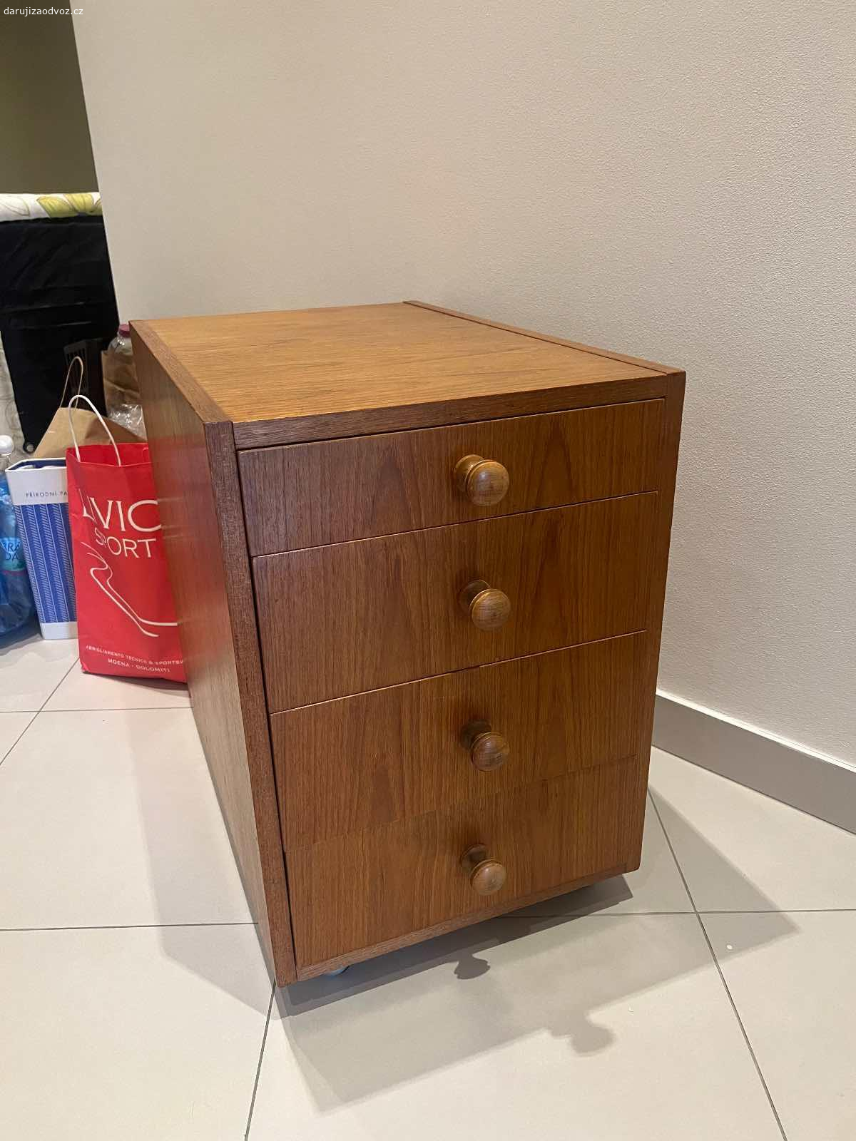 Dřevěná tmavohnědá skříňka se šuplíky na kolečkách, rozměry: H62cm Š46cm V63cm. Ve velmi dobrém stav...