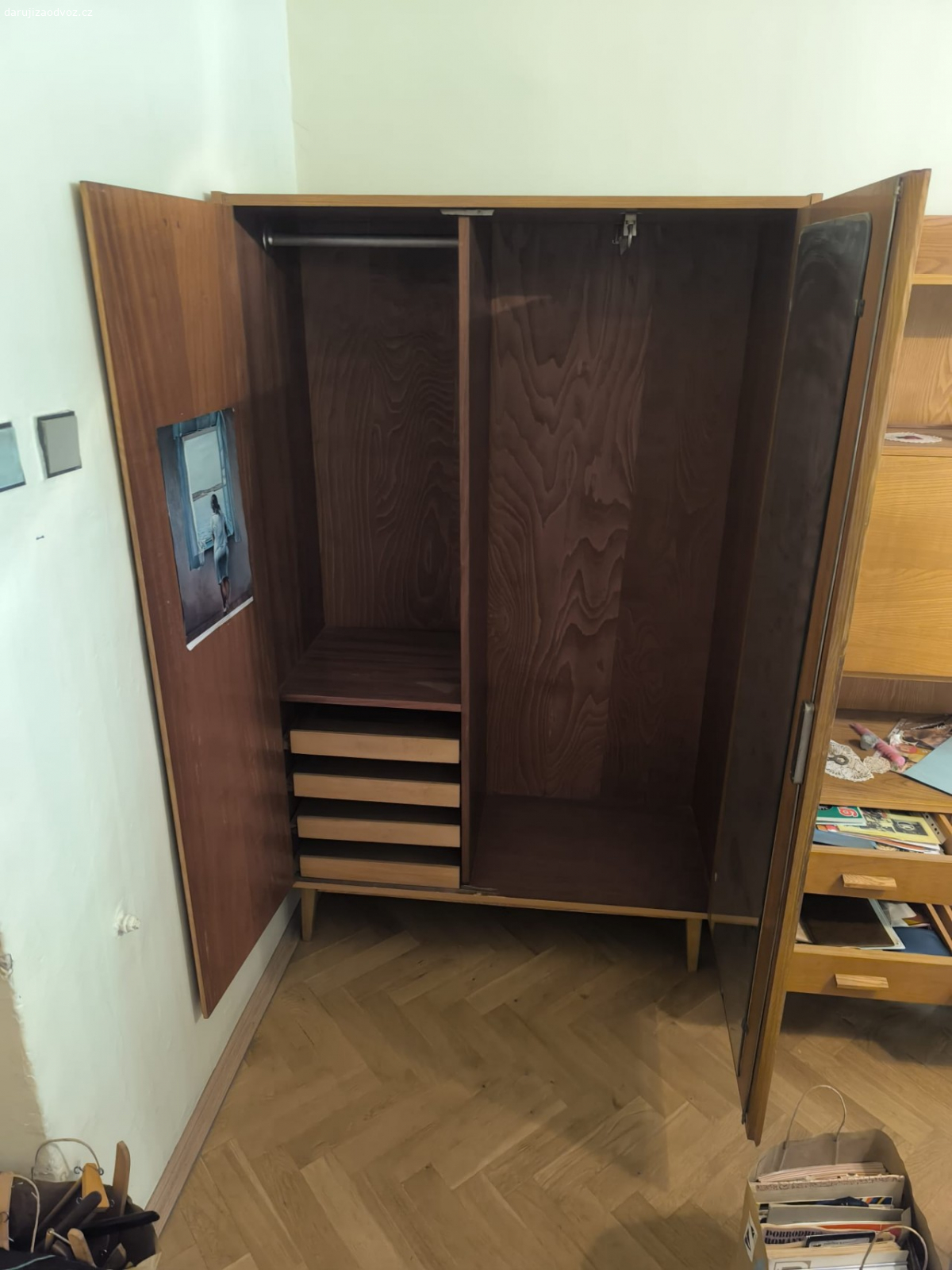 Daruji za odvoz masivní skříně z ložnice z roku 1955. Třetí patro, do výtahu se nevejdou
