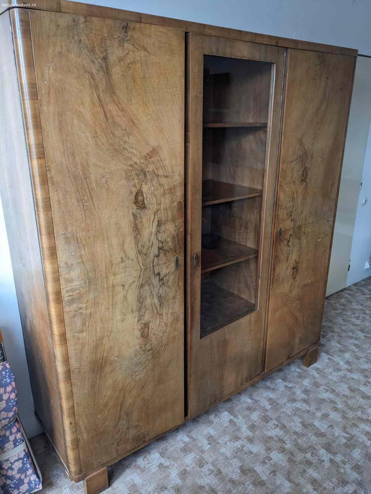 Daruji za odvoz starou skříň z ořechového dřeva - viz fotky. Její rozměry jsou 176 x 196 x 50 cm (šířka x výška x hloubka). Jako bonus je možné přidat k tomu menší dvoudílnou skříň 195 x 110 x 50 cm (š x v x h) a / nebo noční stolek 58 x 46 x 34 cm ze stejného dřeva.