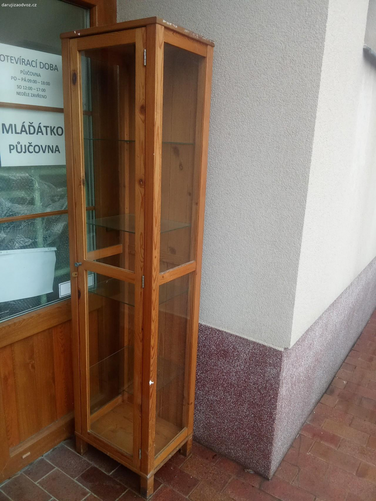 Darují za odvoz prosklenou skříňku 80x62x33 a menší dřevěnou skříňku 60x 46 x34. Lze i jednotlivě....